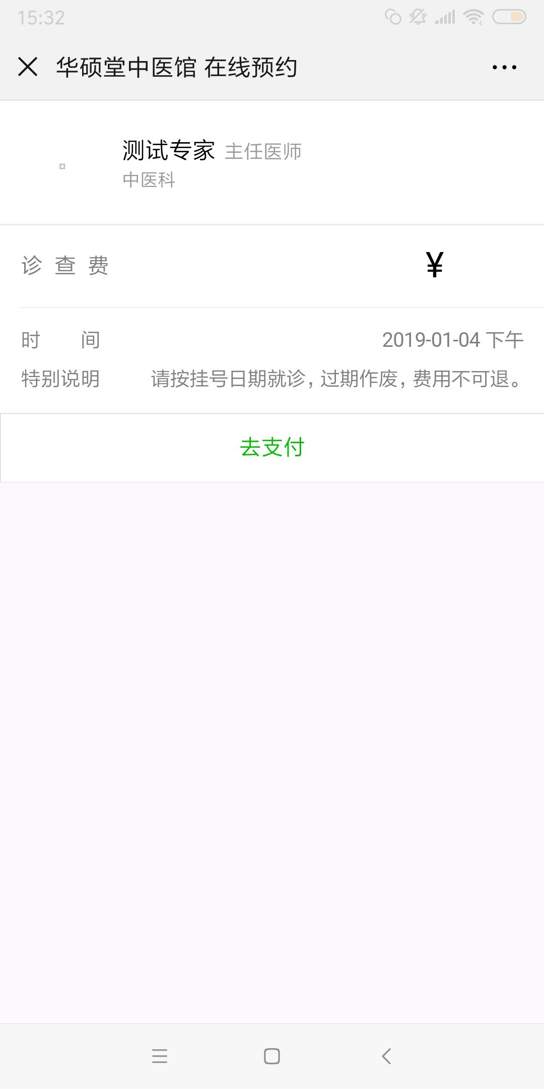第八步:支付成功后会有相应信息发送到您的微信号上,请根据回执信息上的就诊时间前去就诊。