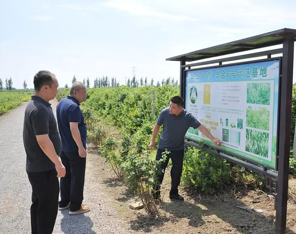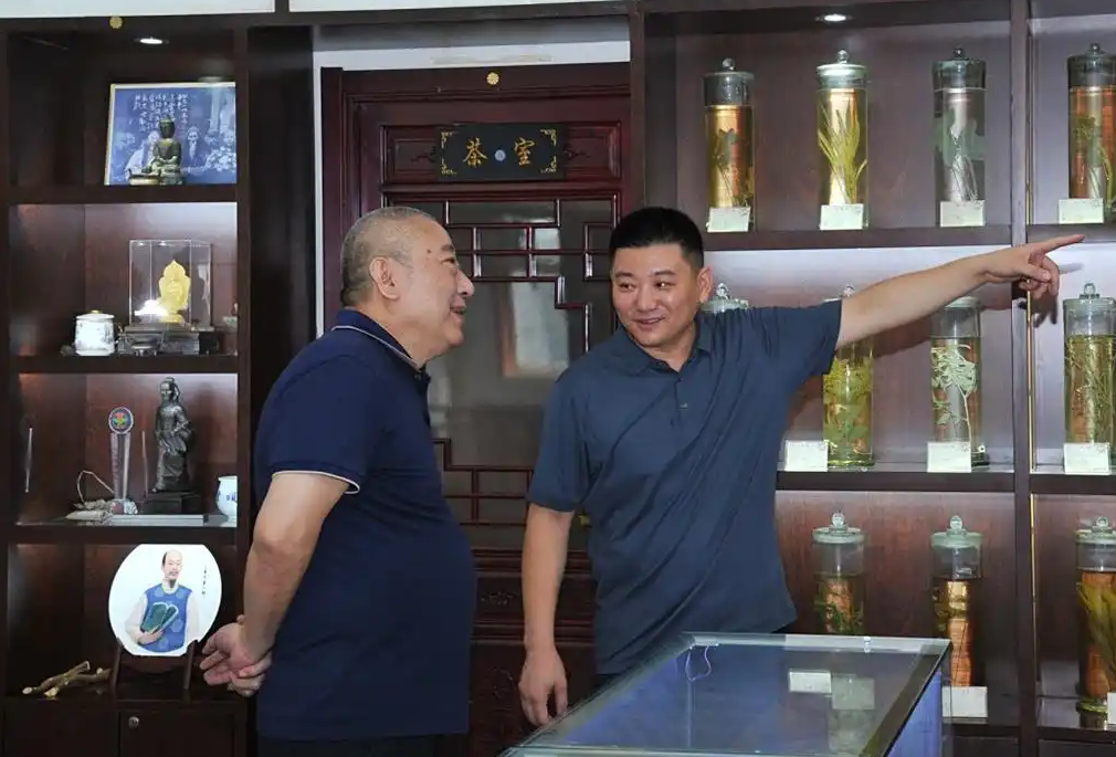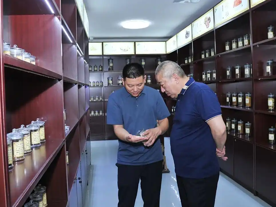 在刘东峰董事长的全程陪同下,刘俊董事长一行冒着酷暑,参观了华硕堂中药馆,考察了华仁医药中药饮片储运设施、药食同源产品研发与生产场所,以及金银种植基地,了解了我市中医药发展状况。